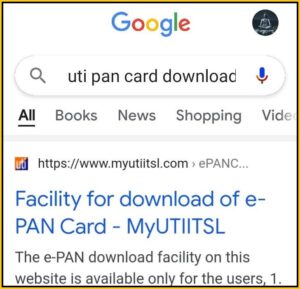 Step-1 सबसे पहले आपको गूगल में UTI PAN CARD DOWNLOAD लिखकर सर्च करना हैं ।